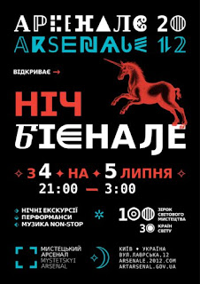"Вы можете посетить выставку Киевской биенале по специальной «ночной цене» - 20 гривен! В стоимость билета входят напитки Coca-Cola, Burn, Bon Aqua от нашего партнера Coca-Cola. Каждый сотый посетитель получит в подарок брендированный сумку и официальный гид биеннале - журнал ART Ukraine, а каждый 200-й - брендированный сумку, футболку и двухтомный каталог ARSENALE 2012!"